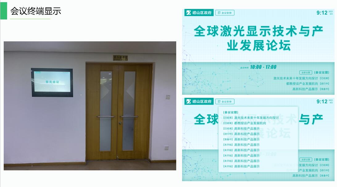 智慧會(huì )務(wù)系統可實(shí)現功能包括:會(huì )議預約、會(huì )議管理、會(huì )議發(fā)布、會(huì )議考勤、會(huì )議統計等。通過(guò)該系統可有效將機關(guān)內各會(huì )議室進(jìn)行合理管理,確保使用人員可正常使用會(huì )議室。
